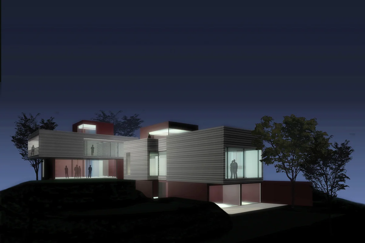 On the site of a former villa surrounded by vineyards, a modern translation of two residences was conceptualized. The scale of the new buildings was limited by the dimensions of the former villa, leaving only a small volume in which to position the two houses. Orientation towards the view and the demarcation of private, exterior space were primary determinants of building form. Taking advantage of their proximity as close neighbours, the two residences share a geothermal energy resource, as well as a sauna and the preserved wine cellar of the former villa. The exterior wood-lattice screens and the earth-toned colour concept help to integrate the buildings into the vineyard scape