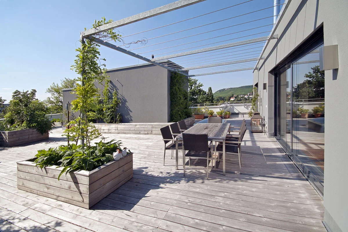 The second building is organized differently: the apartments face the garden, and towards the street are the office spaces. A cafe/wine bar at the ground level provides an ideal meeting place for residents and guests